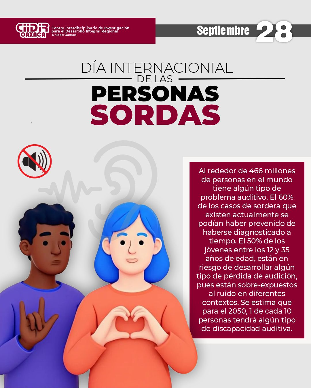 Hoy, en el Día Internacional de las Personas Sordas, celebramos la resiliencia y las valiosas contribuciones de la comunidad sorda en todo el mundo. Su lucha por el reconocimiento, la accesibilidad y la inclusión nos inspira a construir una sociedad más justa, donde todas las voces, habladas o signadas, sean escuchadas y valoradas.