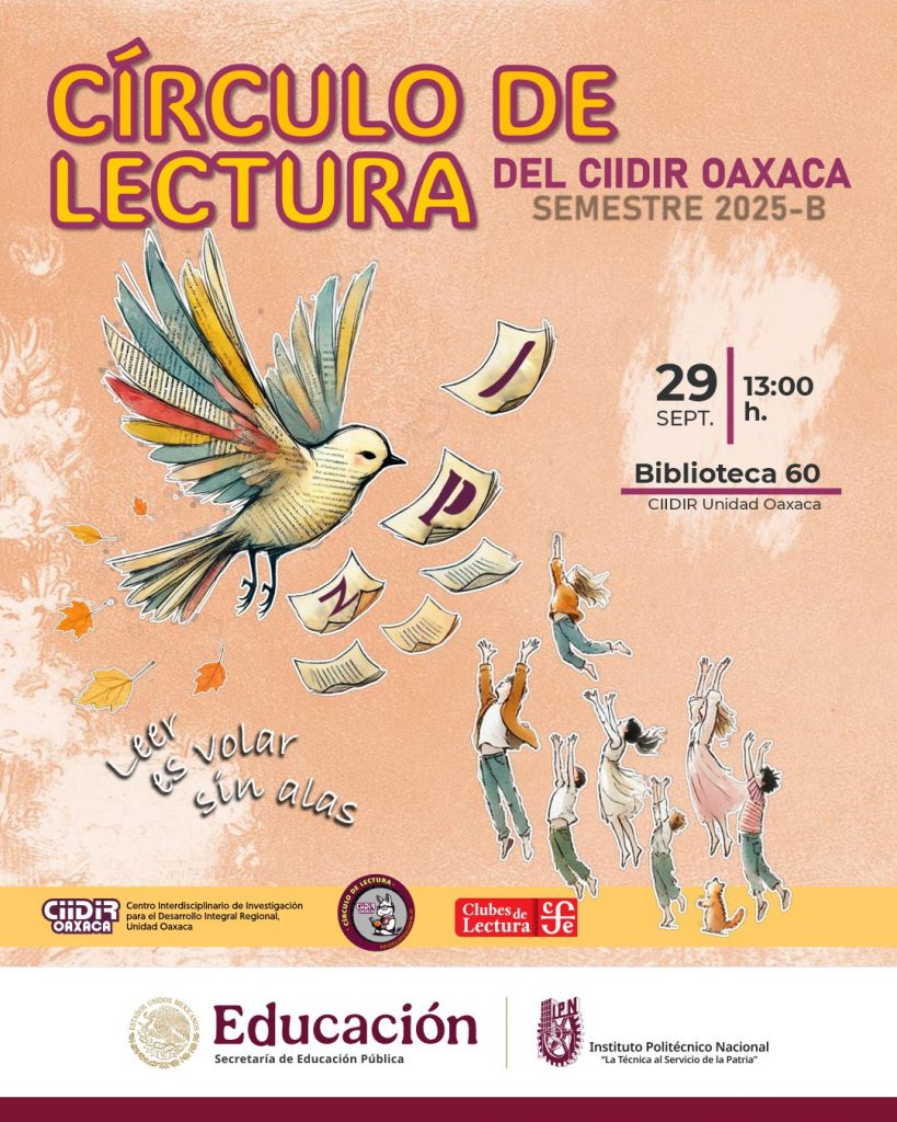Te invitamos al 𝐂í𝐫𝐜𝐮𝐥𝐨 𝐝𝐞 𝐋𝐞𝐜𝐭𝐮𝐫𝐚 en la Biblioteca N. 60 del CIIDIR Oaxaca, lunes 29 de septiembre a partir de las 13:00 h.