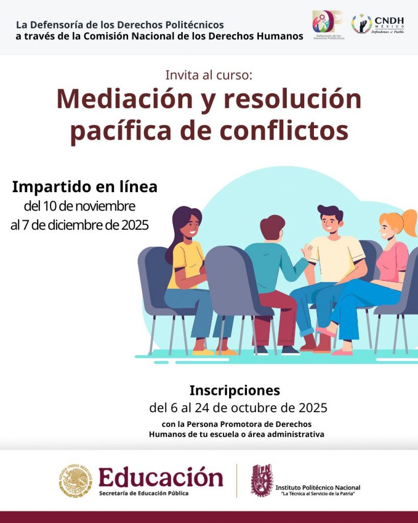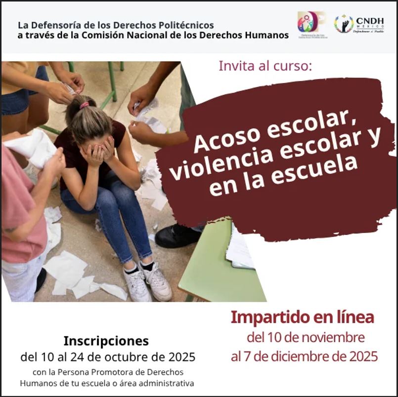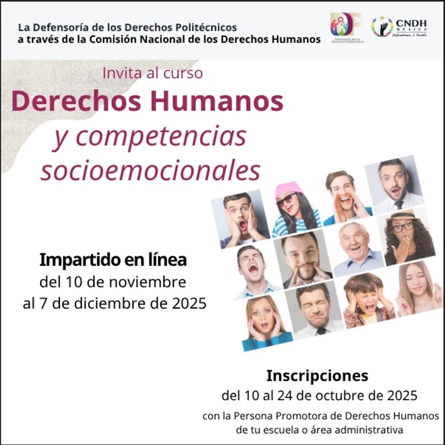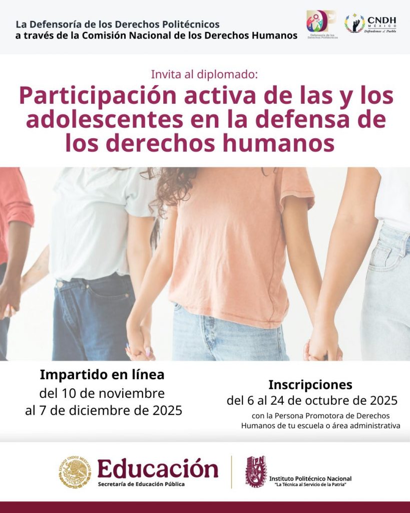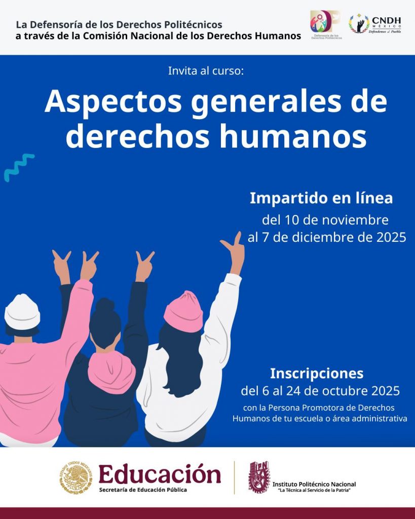 La Secretaría General del IPN (SG-IPN) a través de la Defensoría de los Derechos Politécnicos (DDP), ha publicado los Cursos y Diplomados ofertados por la Comisión de Nacional de Derechos Humanos (CNDH), correspondiente al periodo noviembre – diciembre · 2025.