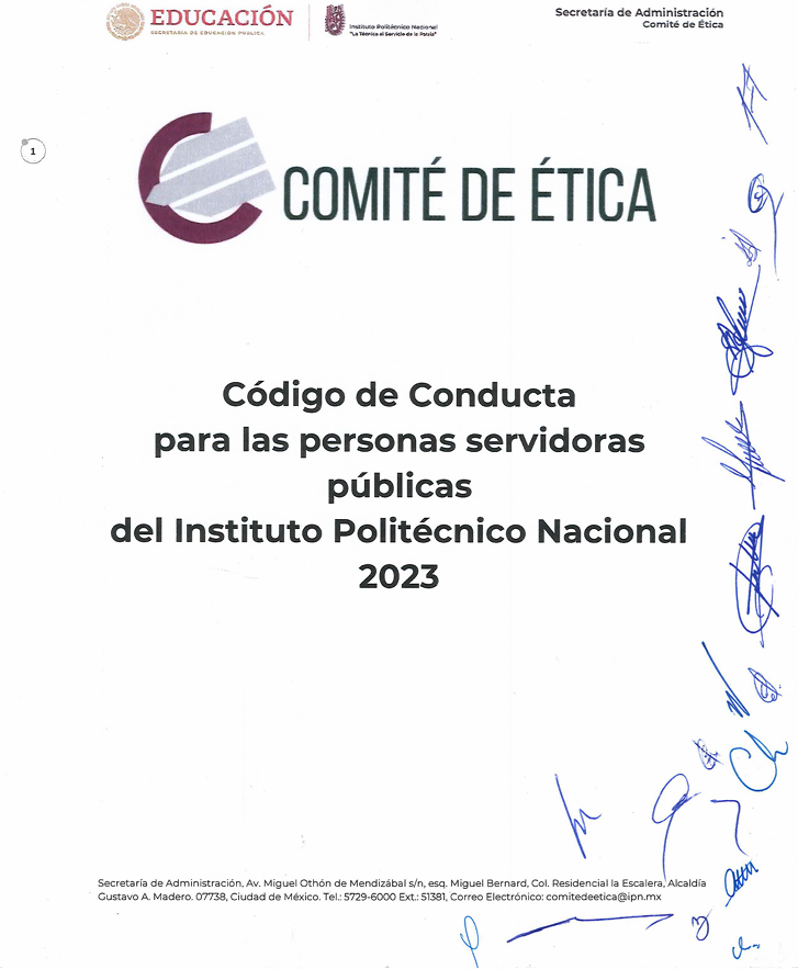 La Secretaría de Administración del IPN (SAD-IPN) a través del Comité de Ética, nos convoca a informarnos e implementar el Código de Conducta para las personas servidoras públicas (PSP) del IPN, para ello:
