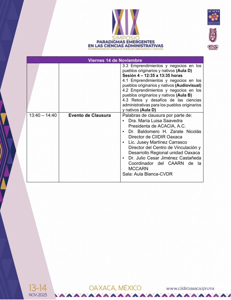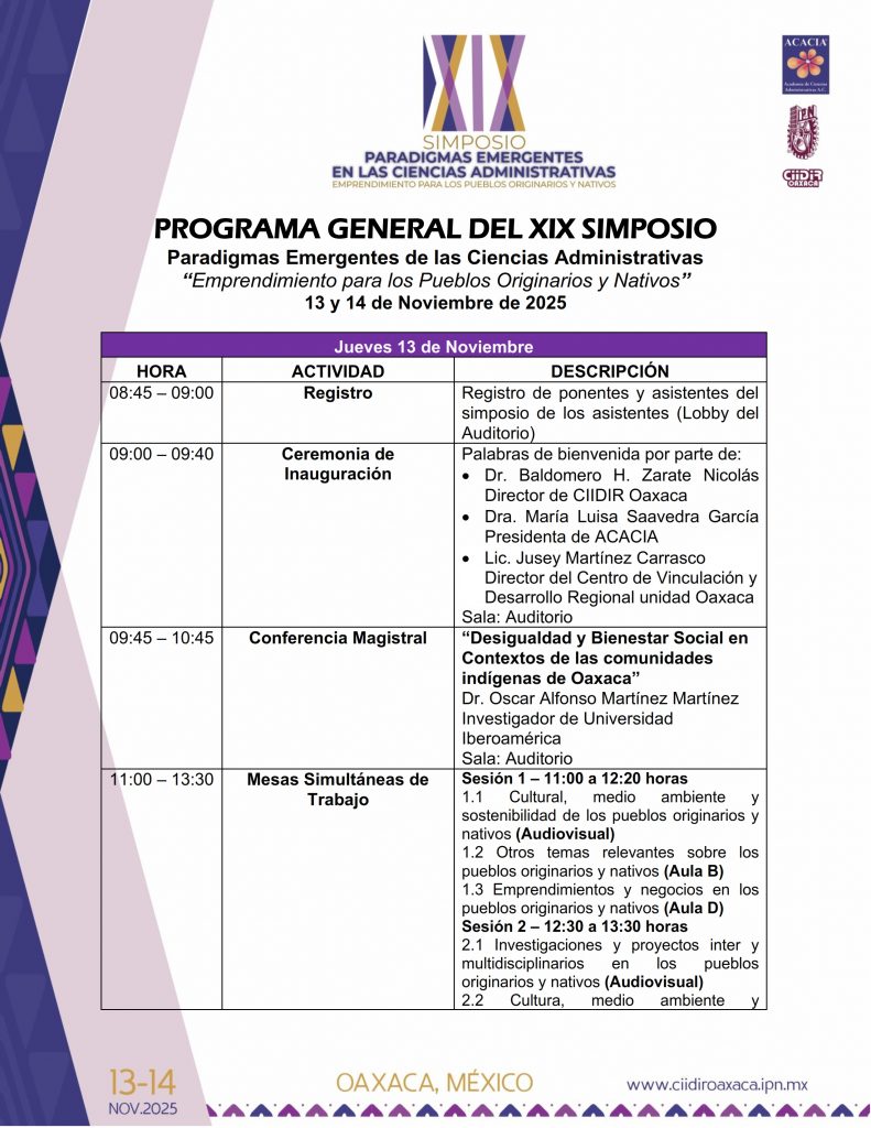 𝗣𝗿𝗼𝗴𝗿𝗮𝗺𝗮 𝗚𝗲𝗻𝗲𝗿𝗮𝗹 𝗱𝗲𝗹 𝗫𝗜𝗫 𝗦𝗶𝗺𝗽𝗼𝘀𝗶𝗼: Paradigmas emergentes en las ciencias administrativas. Bajo el tema: Emprendimiento para los pueblos originarios y nativos.