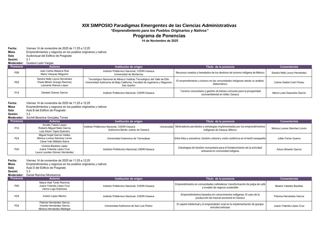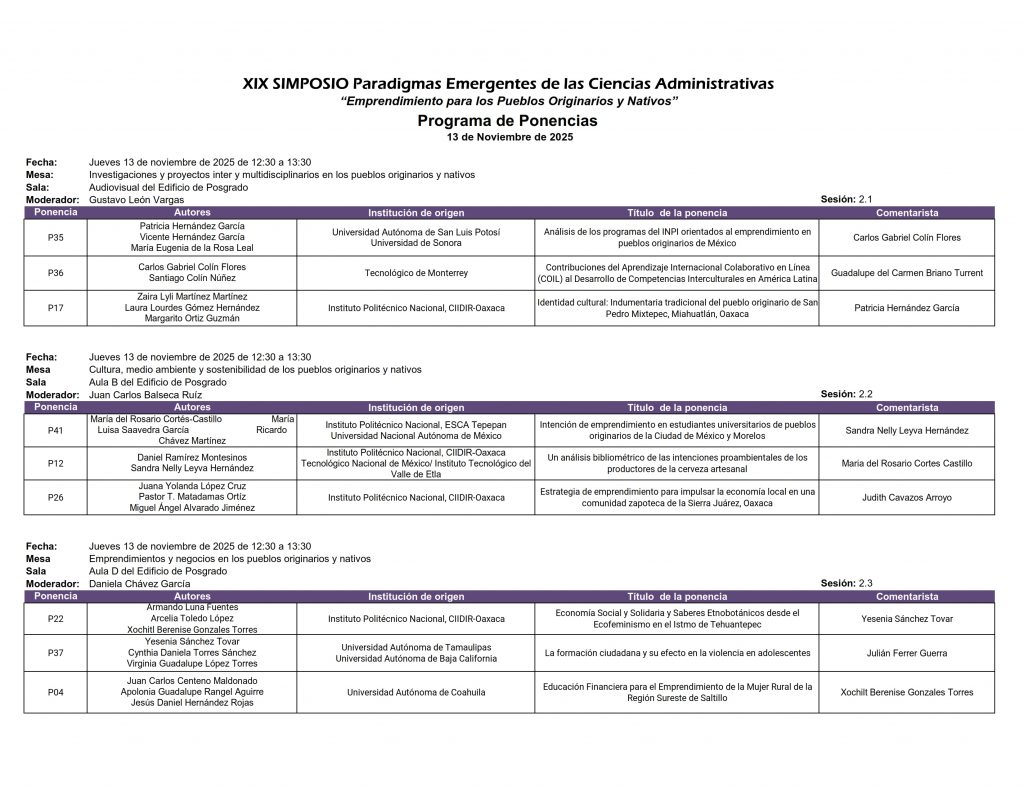 𝗣𝗿𝗼𝗴𝗿𝗮𝗺𝗮 𝗱𝗲 𝗽𝗼𝗻𝗲𝗻𝗰𝗶𝗮𝘀 𝗱𝗲𝗹 𝗫𝗜𝗫 𝗦𝗶𝗺𝗽𝗼𝘀𝗶𝗼: Paradigmas emergentes en las ciencias administrativas. Bajo el tema: Emprendimiento para los pueblos originarios y nativos.