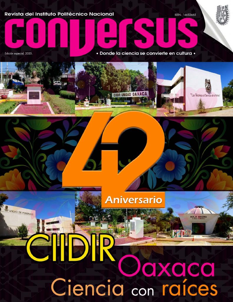Nos sentimos honrados con la edición del número especial por nuestro 42 aniversario de la revista electrónica CONVERSUS del IPN, titulada “CIIDIR Oaxaca, Ciencia con Raíces”. Agradecemos la atención de la Dra. Martha Leticia Vázquez González, Secretaria de Investigación y Posgrado, así como del Dr. Edmundo Omar Matamoros Hernández, director de Difusión de Ciencia y Tecnología del IPN, por el apoyo y difusión del quehacer científico que realiza la comunidad politécnica de este Centro.