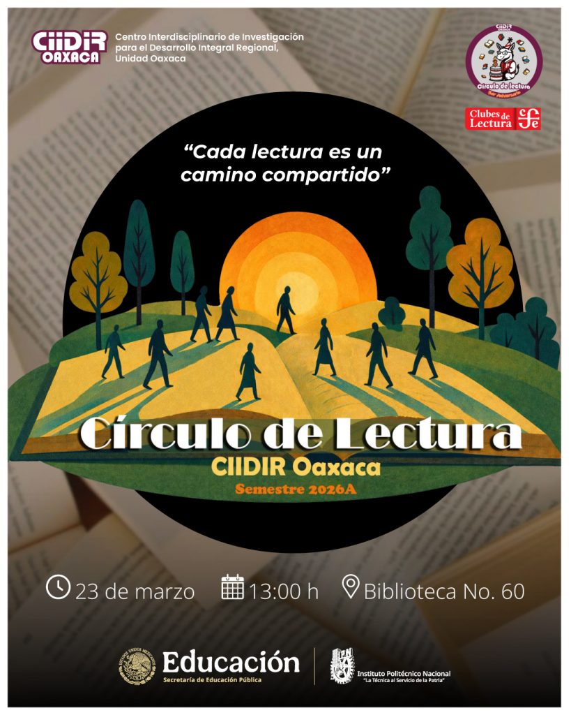 Hoy 23 de marzo a partir de las 13:00 h te invitamos al 𝐂í𝐫𝐜𝐮𝐥𝐨 𝐝𝐞 𝐋𝐞𝐜𝐭𝐮𝐫𝐚 en la Biblioteca N. 60 del CIIDIR Oaxaca.