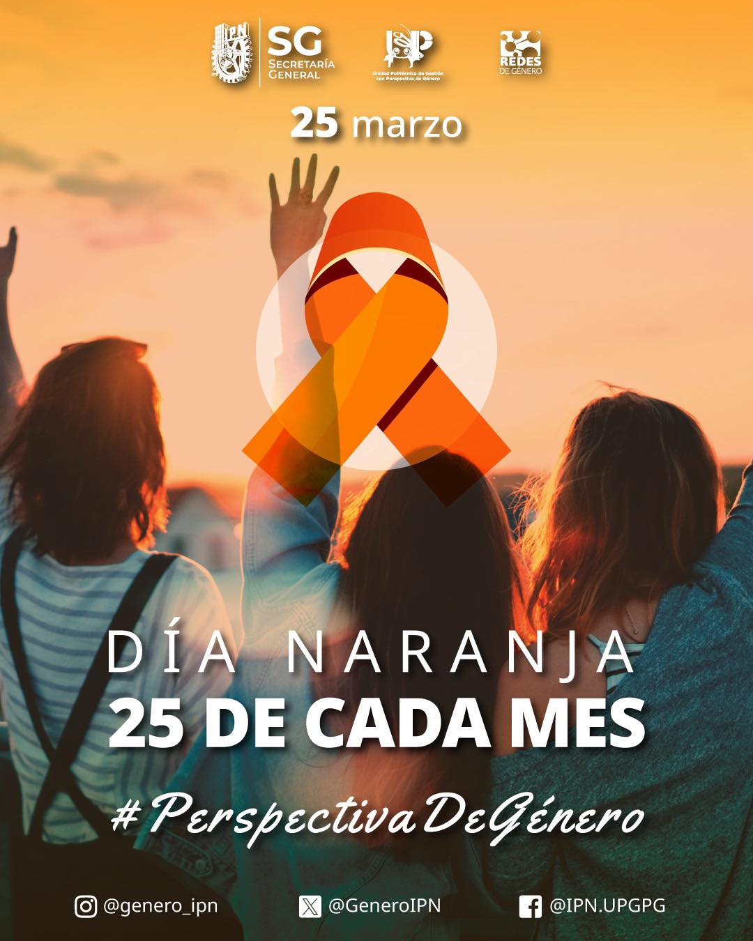 El Instituto Politécnico Nacional a través de la Unidad Politécnica de Gestión con Perspectiva de Género (UPGPG) y las Redes de Género realiza acciones como parte del #DíaNaranja, para crear conciencia, prevenir, visibilizar y enfrentar la violencia de género dentro de la Comunidad Politécnica.