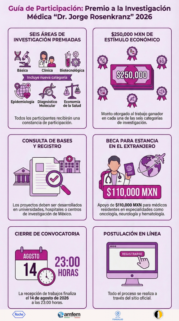 Como parte de su compromiso con el desarrollo del talento médico, el premio también ofrece una beca dirigida a médicas y médicos residentes.