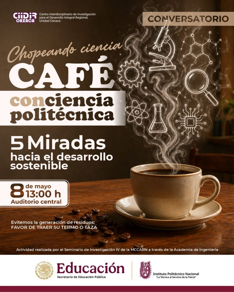 El Seminario de Investigación IV de la Maestría en Ciencias y la Academia de Ingeniería de esta unidad, invitan al “Conversatorio: Café conciencia politécnica, Chopeando ciencia, cinco miradas hacia el desarrollo sostenible”.